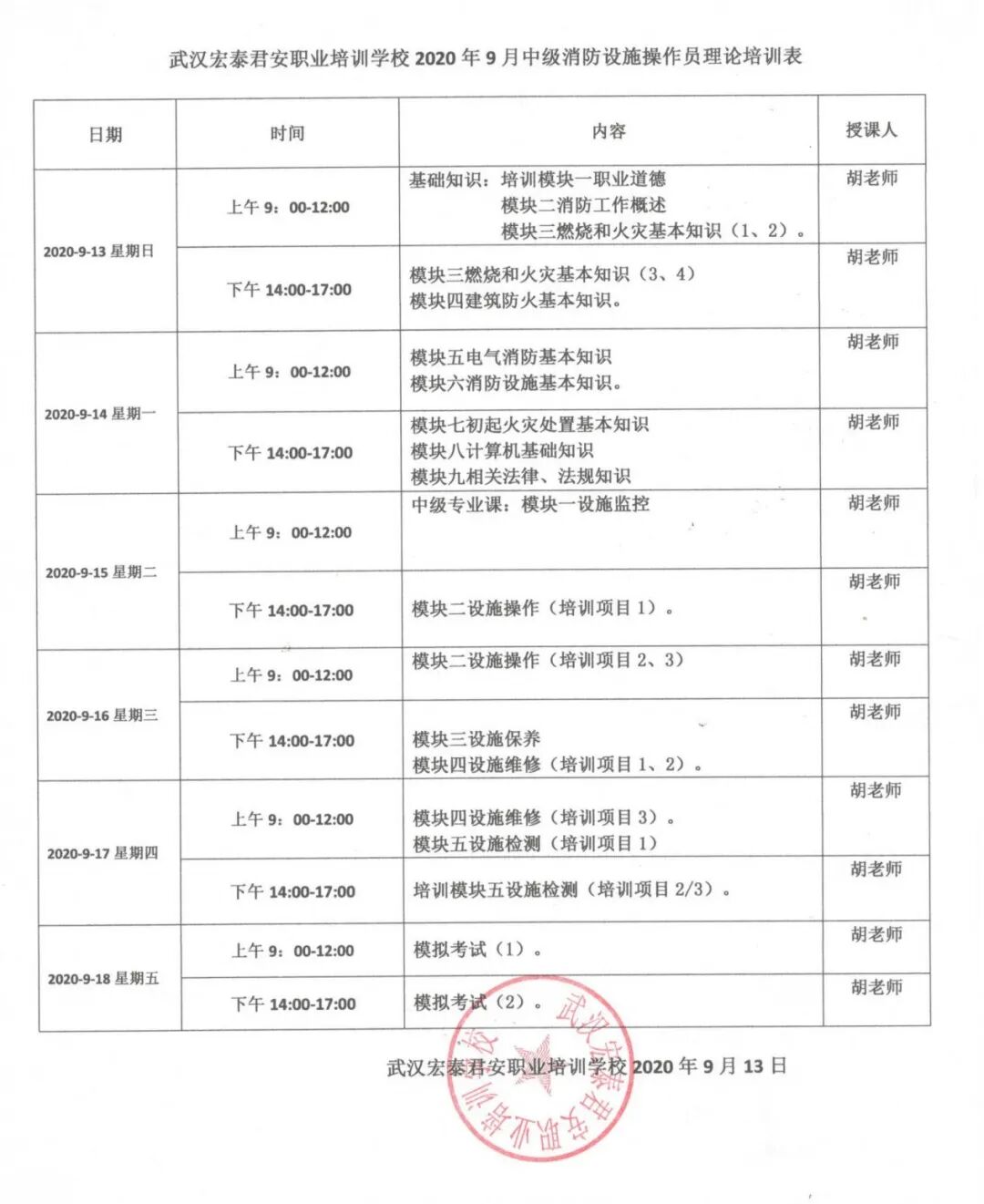 中级消防设施操作员开班时间: